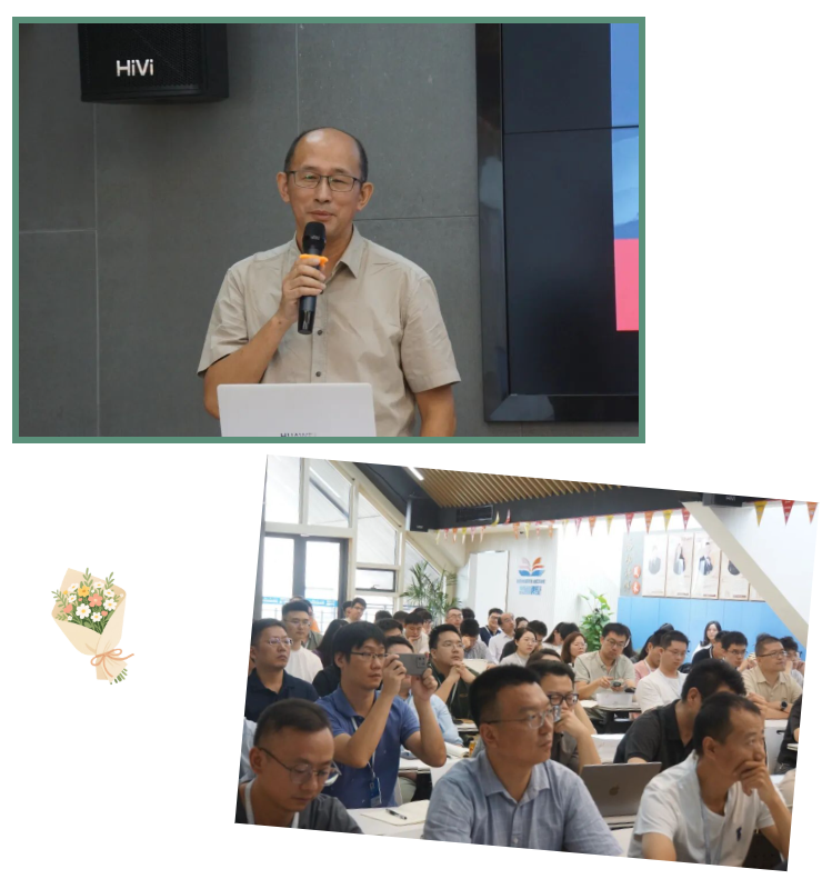 這節(jié)課前期報(bào)名踴躍,現(xiàn)場也是座無虛席,部分未能到場的伙伴也通過線上直播通道同步聽課。肖老師根據(jù)前期收集的公司研發(fā)體系各部門問題,準(zhǔn)備了更有針對性的課程內(nèi)容。他首先從信息時代到智能時代引入,介紹了智能進(jìn)化的方向,硅基與碳基生命共生紀(jì)元。